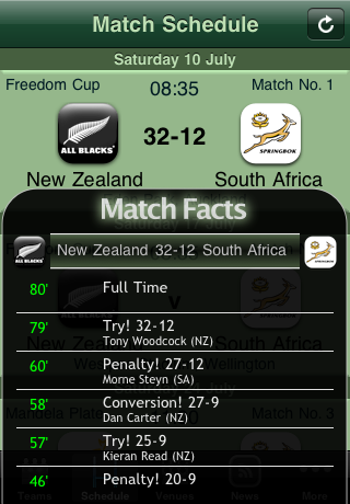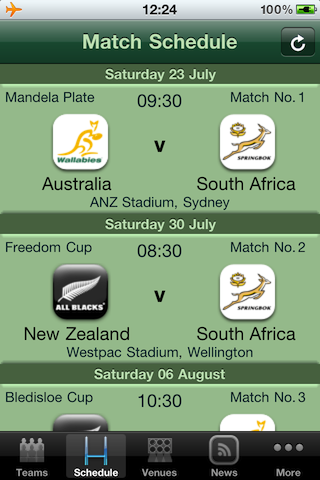 This page shows the games, venues, dates and times for kick off. All times are localised to the iPhone/iPod local timezone.